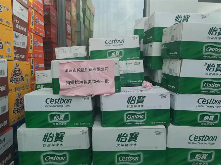 清遠市毅通織造有限公司何總表示,作為四川綿陽人,曾經在08年的汶川大地震中深深感受到全國人民對于四川父老鄉親的無私幫助及關愛,大愛無疆,在這次洪澇災害威脅清遠,百姓的生活受到嚴重影響之際,毅通織造向堅守在防汛一線的工作人員表達深深的敬意和感謝,并用實際行動將曾經受到的關愛存續下來,為防汛減災貢獻一己之力,共同守護清遠美好家園!