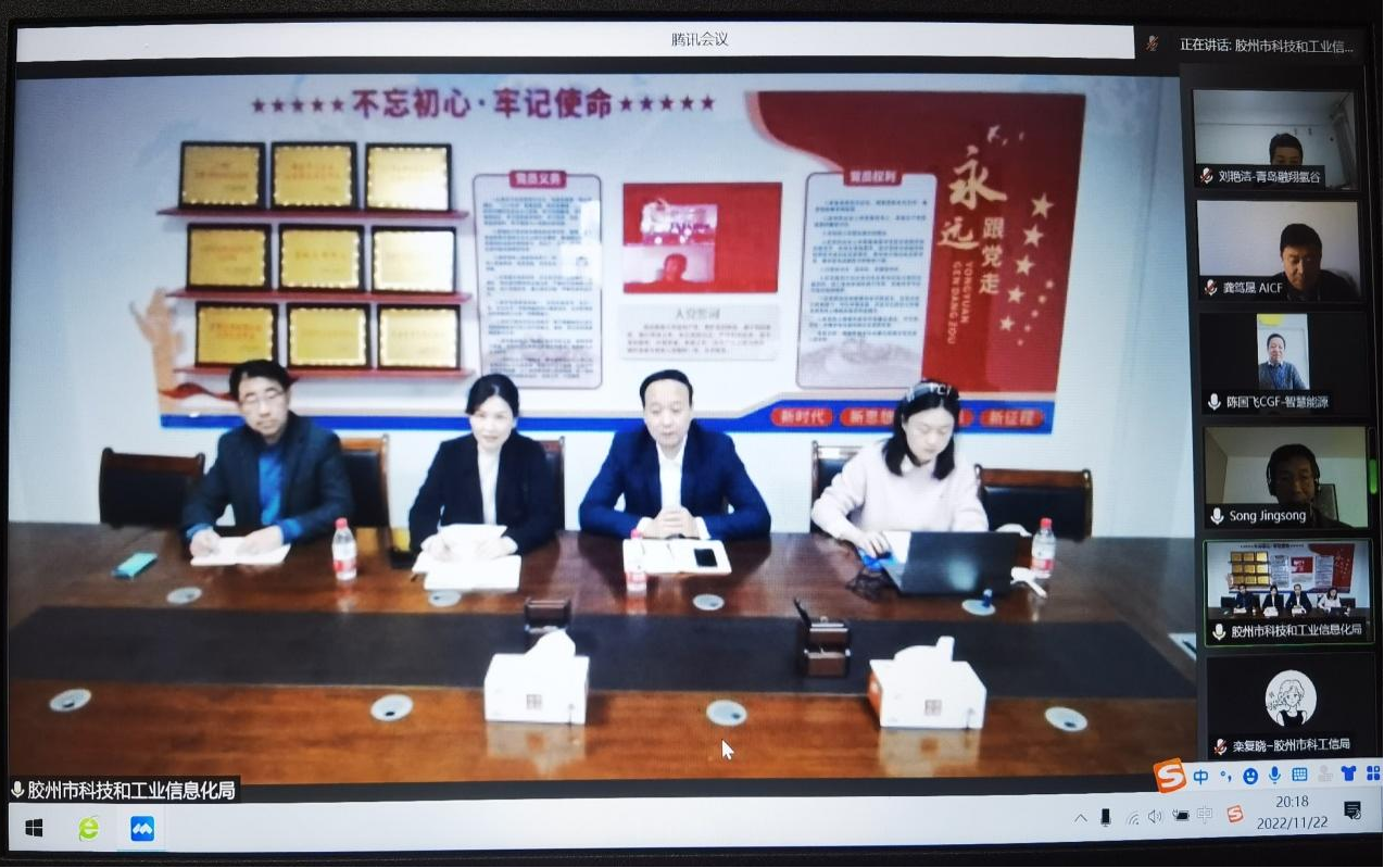 2022年11月22日 公司董事長陳國飛受膠州市委組織部劉孺霖部長、市科創(chuàng)中心副主任張磊委托與“中國旅法工程師協(xié)會”會長龔篤晟、常務理事宋勁松視頻連線交流,幫助膠州市政府進行外國高端人才引進、產業(yè)導入。
