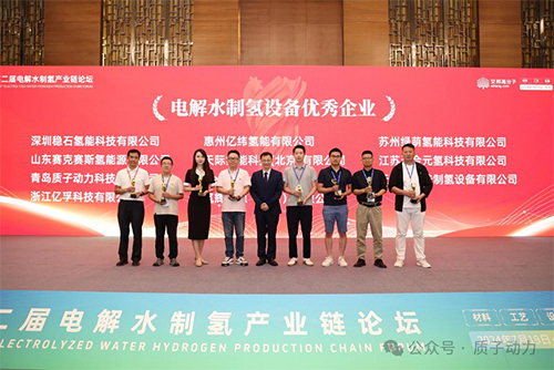 論壇結束后,舉辦了優秀企業頒獎典禮,質子動力榮獲“2024電解水制氫設備優秀企業-綠氫榮耀獎”。